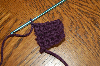 Now you are going to work down the left side of the block. Turn block so that you will be working on the left side and insert needle into center of the side. Just kind of pick a spot - that is in the center. There aren't really any chain tops to use because this is a side. *Note - you will be completing a double crochet for your first stitch, so be sure to wrap the yarn around your hook one time before inserting the hook into the side of the block (not shown correctly in photo - I forgot to wrap the thread)